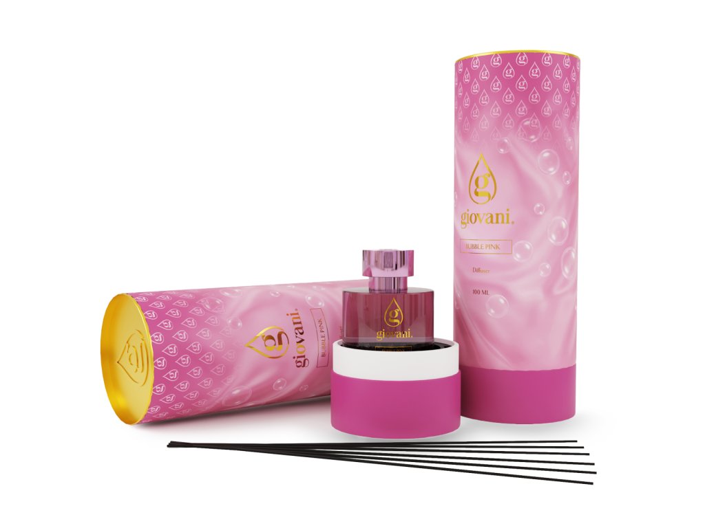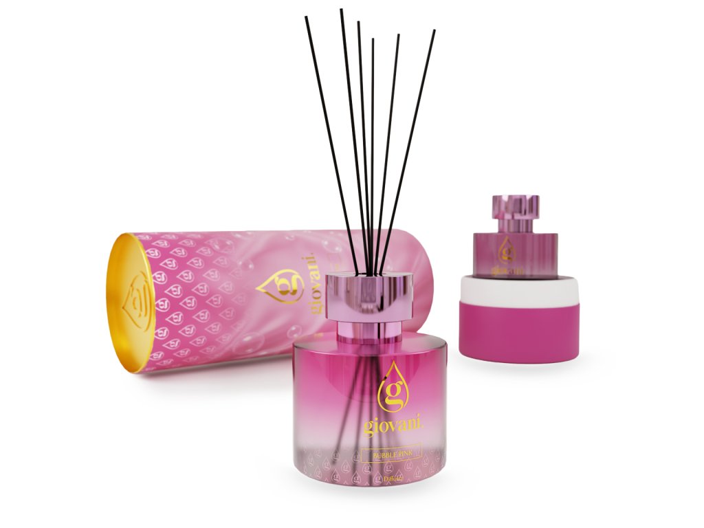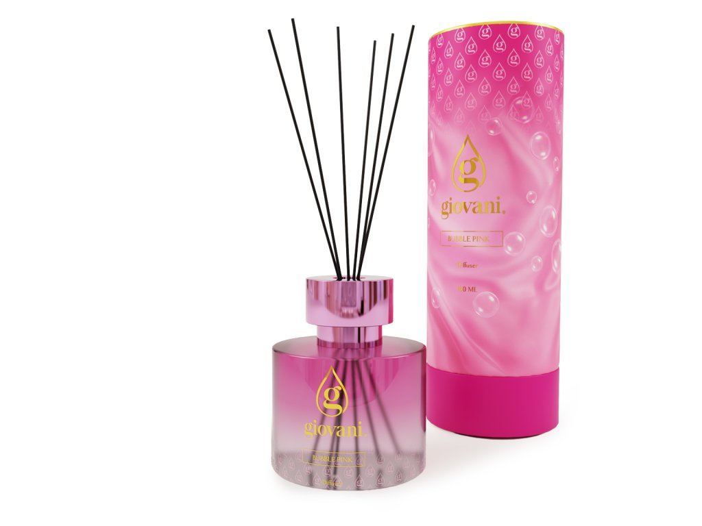 Rotaļīgs saldums ar neatvairāmi sievišķīgu raksturu. Aromāta difuzors ar kociņiem Giovani® BUBBLE PINK atklājas ar dzirkstošiem aldehīdiem, saldu apelsīnu un samtainu persiku, radot svaigu un optimistisku noskaņu.