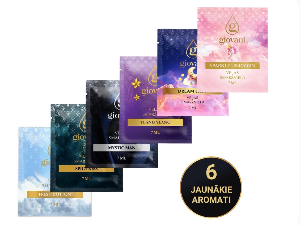 Giovani® ir ekskluzīvs un grezns veļas smaržu zīmols. Mēs esam veltījuši lielu uzmanību, lai nodrošinātu to augsto kvalitāti. Izstrādājot šos aromātus, mums bija svarīgi panākt to spēcīgu intensitāti un ilgstošu noturību, lai mēs varētu runāt par Giovani® kā par vislabākās kvalitātes veļas smaržu zīmolu tirgū. To lielā priekšrocība ir tā, ka tās neaizsprosto veļas mazgājamo mašīnu, neatstāj taukainus nosēdumus un nerada traipus uz apģērba. Pateicoties dažu vielu saturam, mūsu eļļas rūpējas arī par jūsu veļas krāsu. Tās ir vegāniskas, nesatur dioksānu, SVHC, parabēnus, tenzīdus, PBT/vPvB vielas, smagos metālus, piesārņojošas atliekas, mikroplastmasu vai nano plastmasu. Giovani® zīmola unikalitāti papildina tā greznais dizains. Mēs lepojamies arī ar piegādi 24 stundu laikā un ātru klientu apkalpošanu. |