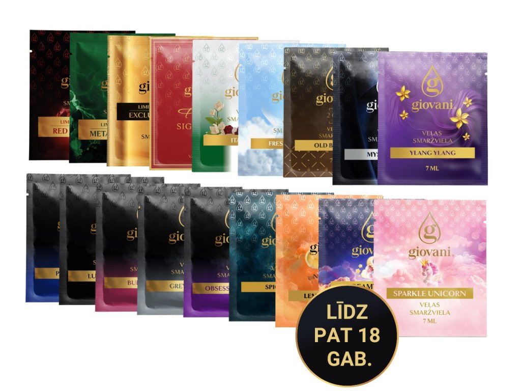 JŪS NEVARAT KĻŪDĪTIES AR PARAUGIEM Negribat uzreiz tērēt vairāk naudas, jo vēl nepazīstat Giovani® smaržas? Izmēģiniet paraugus, un nākamreiz jūs noteikti zināsiet, ko izvēlēties. |